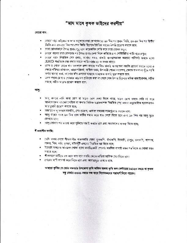 মাঘ মাসে কৃষক ভাইদের করণীয়